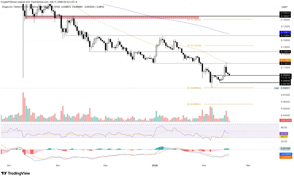 Conversely, if Dogecoin can regain a daily close above the psychological $0.1000 level, selling pressure may ease, opening the door for a recovery toward resistance around $0.1161.