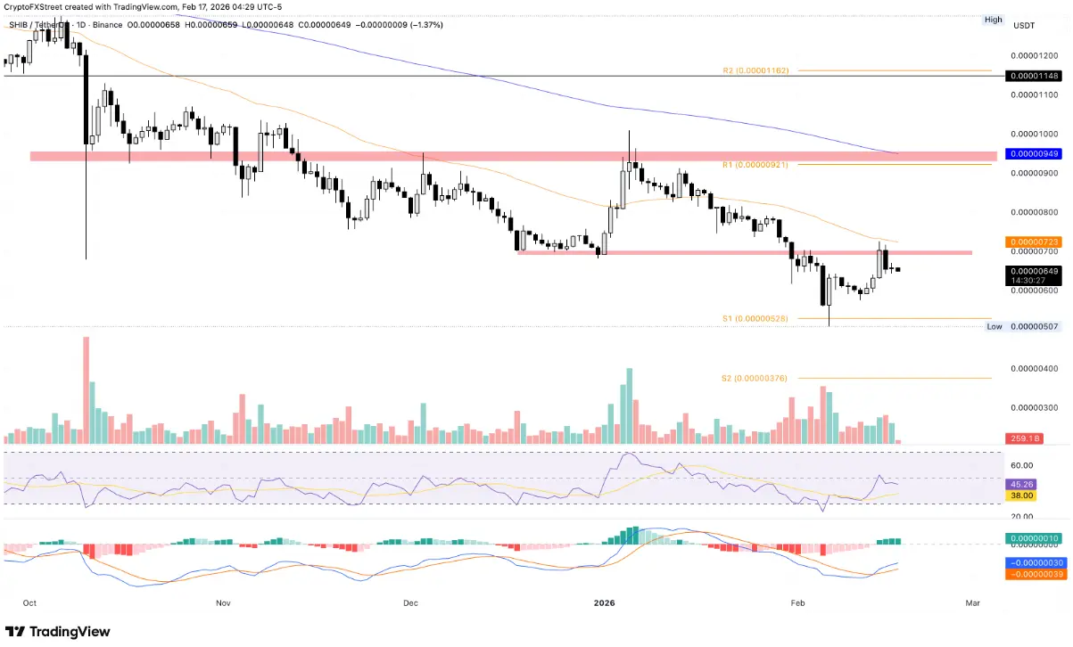 Daily SHIB/USDT chart | Source: TradingView Similar to Dogecoin, technical signals on the daily timeframe show Shiba Inu’s upward momentum weakening. The RSI has fallen to 45 and dropped below the neutral threshold, while the MACD histogram has narrowed significantly, reflecting diminishing buying pressure.