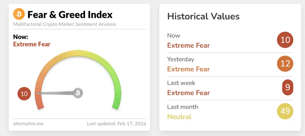 Dogecoin is currently trading below the key psychological level of $0.1000 as of Wednesday, down about 2% for the day. This meme coin continues its third consecutive correction, testing the closing price of February 6 at $0.0984.