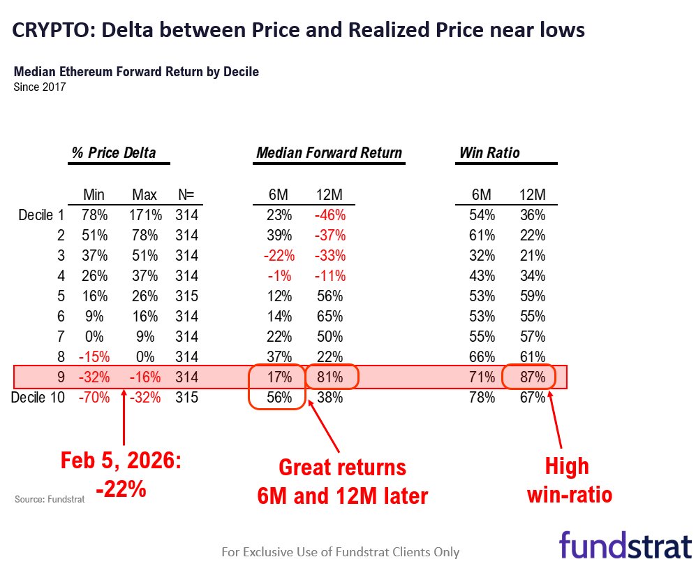 According to Sean Farrell’s model, at this loss level, ETH’s implied return over the next 12 months could reach 81%. Tom Lee also agrees with this analysis, believing it helps in positioning near the bottom.