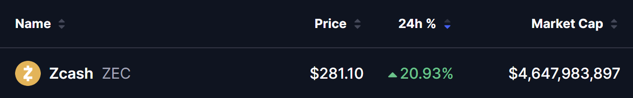 • ZEC surged ~20% as the broader crypto market bounced.
