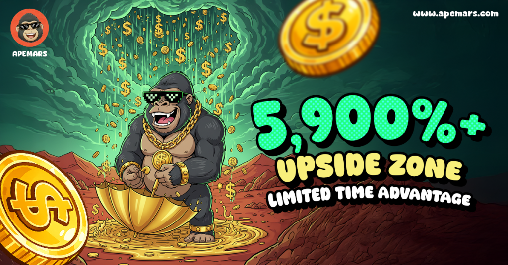Investing $5,000 in APEMARS Stage 10 at $0.00009131 per token could secure 54,757,000 $APRZ tokens. At the intended listing price of $0.0055, this position could reach $301,663, offering a 5,923% ROI. Even early joiners from Stage 1–9 have enjoyed 437% returns. With 63% APY staking, strategic burns, and community-driven momentum, this stage presents a clear example of how top altcoin picks can generate asymmetric upside.