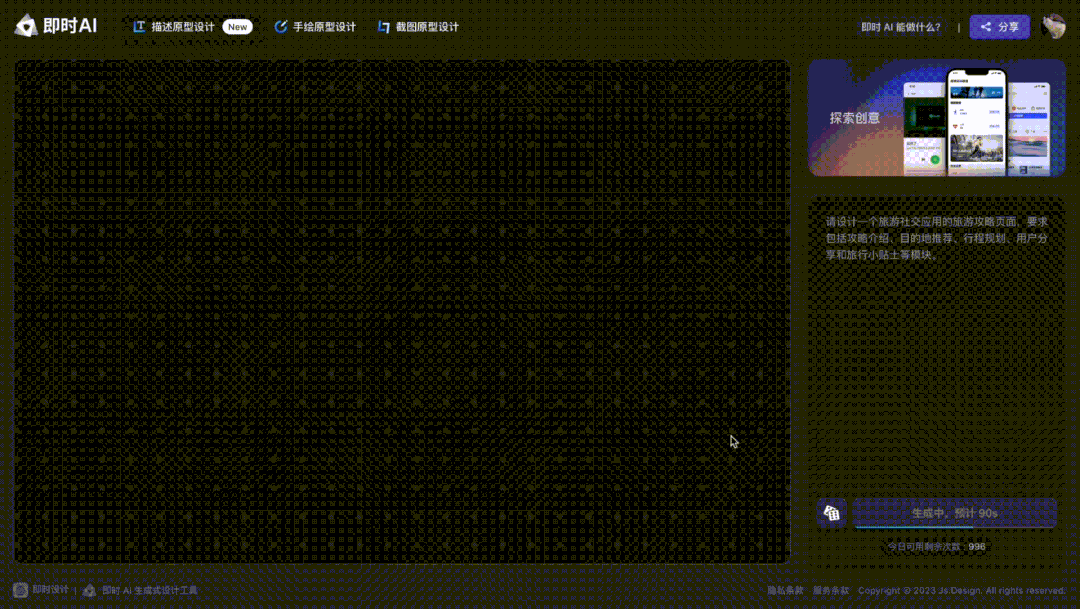 3 月 28 日,一款面向 UI 设计的生成式 AI 产品,能够让 AI 生成可编辑 UI 设计稿的「即时 AI」开放内测申请,迅速获得了业内人群的关注,在 24 小时内就收到了上万份申请。截至目前,已经有超过 3 万人参与内测,并有更多用户在等待内测资格的发放。
