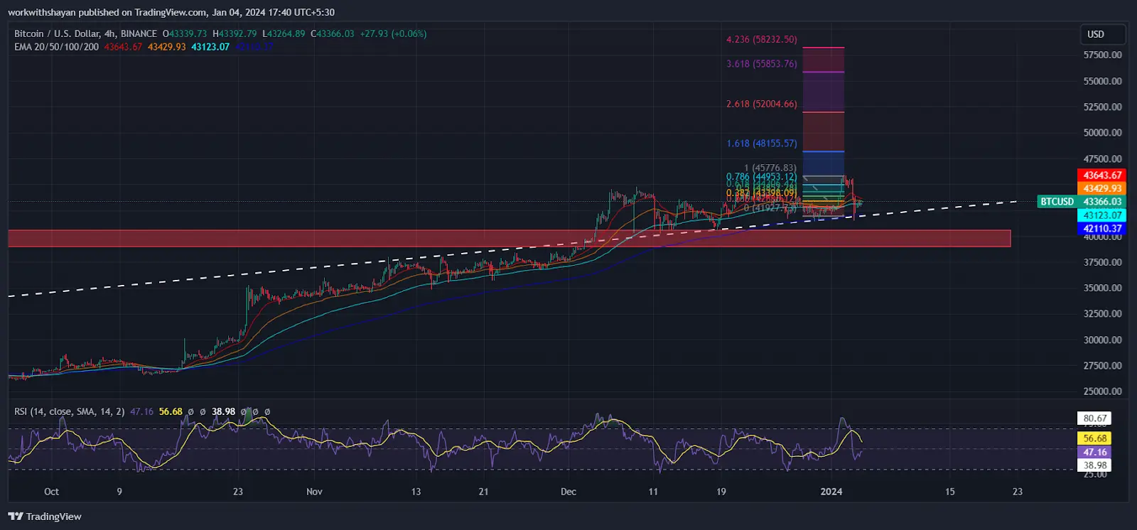 Conversely, if buyers manage to push the price above $46,000, it could signal a bullish consolidation with the resistance zone of $48K-$50K.