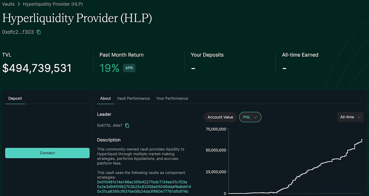 Currently, the Hyperliquid platform’s Hyperliquidity Provider (HLP) treasury provides a yield of 18.61%, which is a sustainable and stable source of return. According to the official description, HLP provides liquidity for Hyperliquid through various market-making strategies, while executing liquidation operations and accumulating platform trading fees.