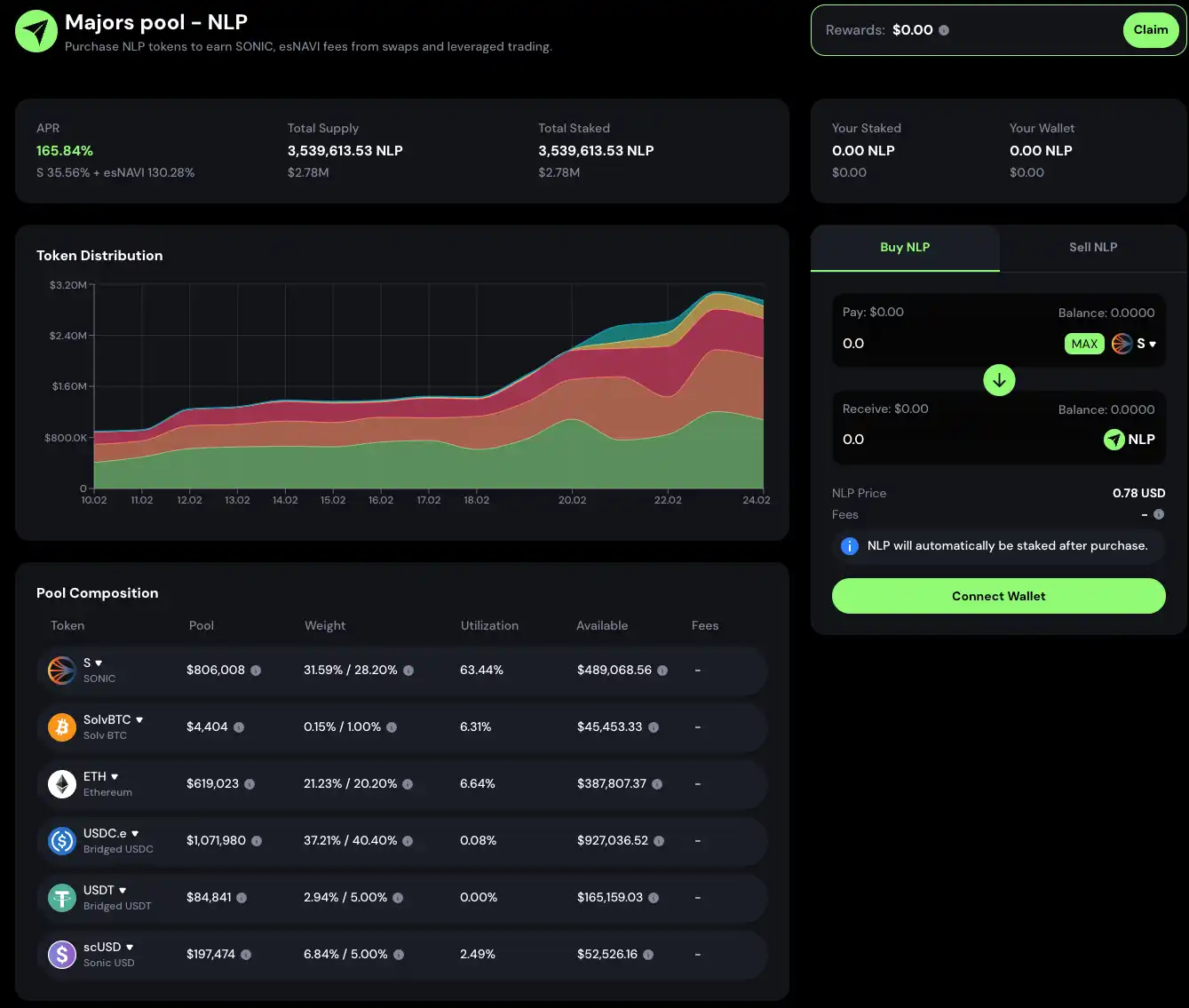 Navigator Exchange is a fork project based on GMX that has also launched a GLP/JLP-like product called NLP. It is important to note that this product may be subject to certain price fluctuation risk (Delta risk) due to the inclusion of S, BTC and ETH in its portfolio. Currently, NLP offers the following rates of return: