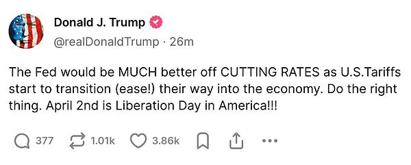 On the other hand, the president continues to post encouragement: The Federal Reserve better lower interest rates!