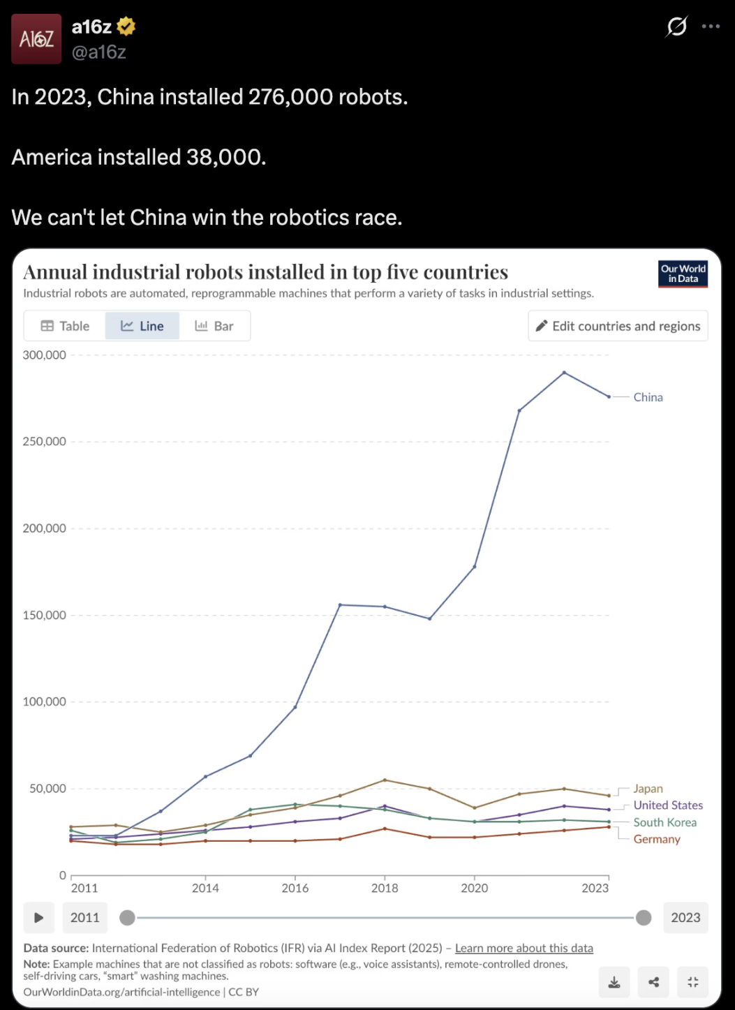 The robotics field has yet to receive the attention it deserves. Current discourse still focuses on software and pure AI narratives, while physical automation quietly accumulates momentum.