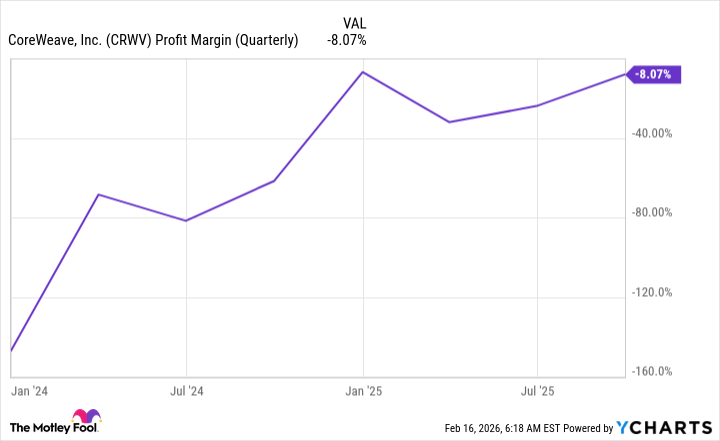 CoreWeave isn’t anywhere near posting profits and has losses each quarter, although this is getting better.