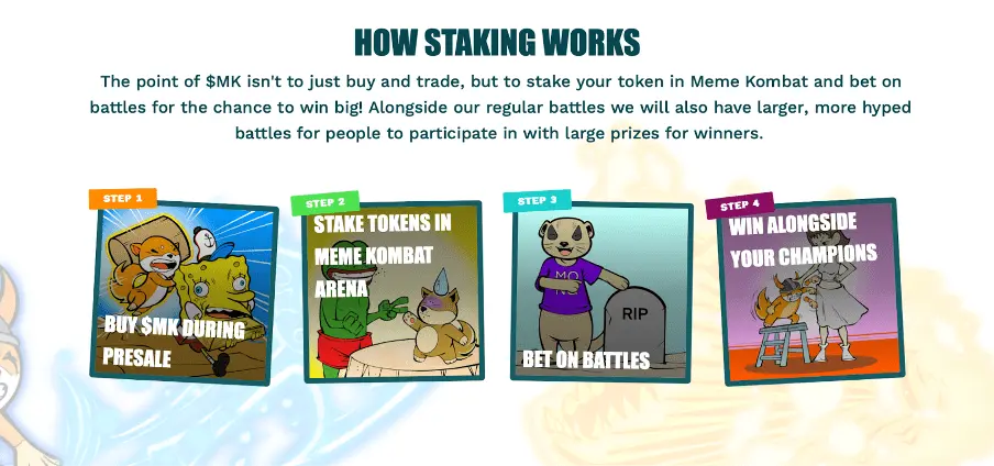 Meme Kombat steps into the GambleFi market with a creative new theme. It is fun, interesting, and has viral potential, thanks to the integration of iconic meme coin characters.