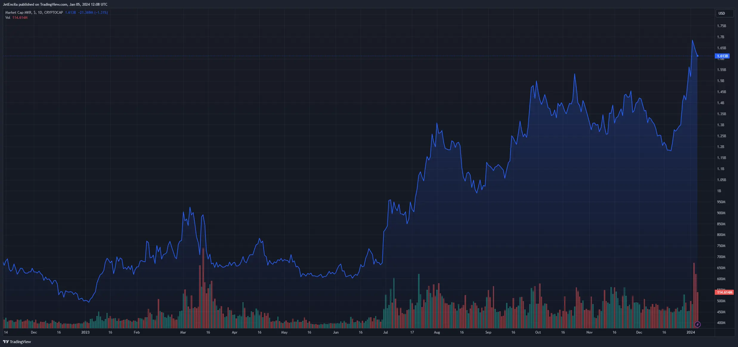 MKR market cap currently at $1.6 billion. Chart: TradingView.com