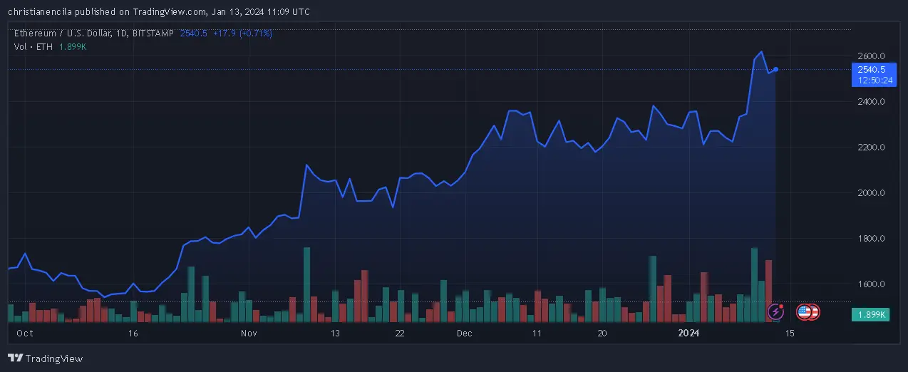 Just days after the highly anticipated approval of Bitcoin’s spot ETF, a paradoxical scene unfolds: ETH soars 13.5%, scaling a 9-month high above $2,650, while BTC stumbles with a 10% dip. This unexpected turn of events has sent shockwaves through the crypto community, igniting a fierce debate – is Ethereum finally usurping Bitcoin’s throne?