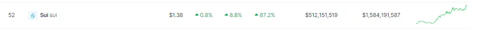 Sui (SUI), a newcomer in the crypto sphere, is making waves as it tallied an impressive 87% rally in the last seven days, pushing its price to reach $1.43 at the time of writing for a new record high. Its native token has outperformed Bitcoin, sparking renewed interest in the dormant DeFi scene.