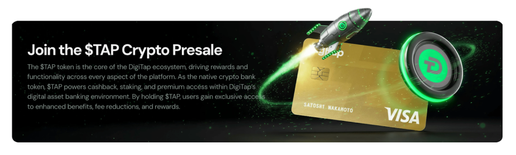O Digitap também cria uma procura intrínseca através da atividade financeira diária. Isto coloca-o firmemente entre as pré-vendas de cripto focadas na utilidade do mundo real.