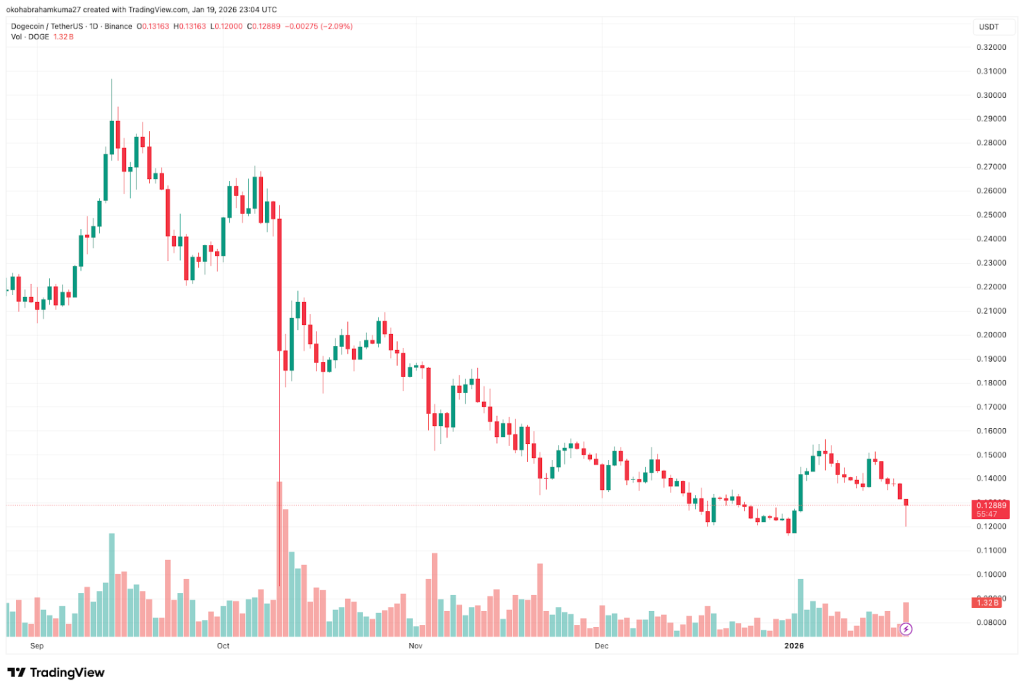 A previsão do preço do Dogecoin mantém-se mista, com alta atividade e baixo desempenho de preço. O volume de negociação do Dogecoin aumentou 220% nas últimas 24 horas, chegando a quase $2 bilhão em 19 de janeiro, indicando um aumento massivo na atividade do mercado.