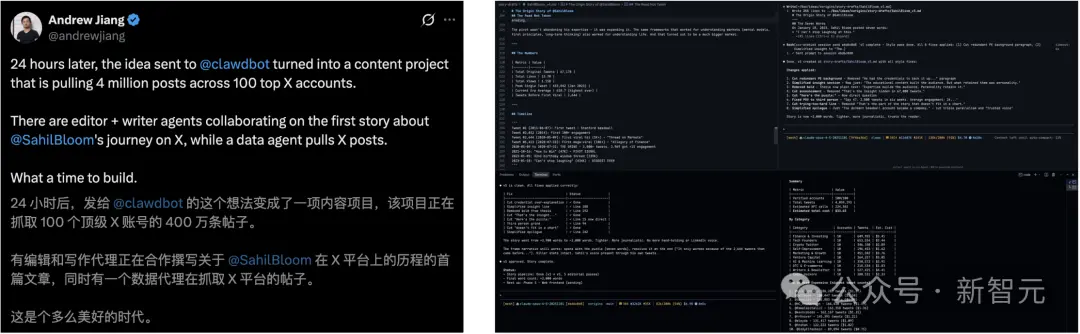 O desenvolvedor do navegador de IA Arc, Andrew Jiang, testou na prática: após 24 horas de dar ideias ao Clawdbot, ele conseguiu extrair conteúdo de 100 contas principais na plataforma X, totalizando 4 milhões de tweets.