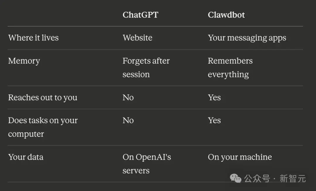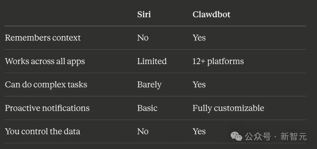 ChatGPT é uma janela de chat; o Clawdbot é um assistente que vive na sua vida pessoal. Siri tem memória de goldfish; o Clawdbot realmente tem cérebro.
