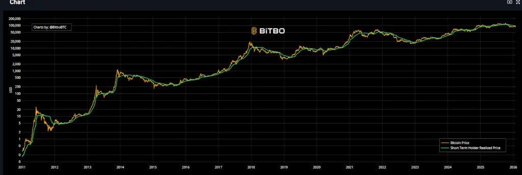 Terceiro indicador: custo dos detentores de curto prazo fornece suporte final. Dados do BitBo mostram que o preço do Bitcoin ainda está acima do custo real dos detentores de curto prazo, estimado na faixa de 60.000 a 70.000 dólares. Isso significa que a maioria dos novos compradores ainda não está no lucro, reduzindo a possibilidade de vendas em pânico. Relatório do Glassnode indica que atualmente cerca de 19,5% da oferta de detentores de curto prazo está em prejuízo, bem abaixo de níveis associados a capitulação em larga escala.