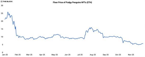 Estes desenvolvimentos mostram que, mesmo com métricas on-chain fracas, as IP de NFT conseguem penetrar na cultura mainstream. Ainda assim, apesar do crescimento da marca, os NFT Pudgy Penguins viram o floor price cair cerca de 75% durante o ano.