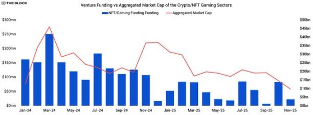 Desde o boom do Axie Infinity, a interseção entre NFT e gaming tem sido um dos principais temas de investimento, mas os dados de 2025 mostram que o setor ainda não correspondeu ao financiamento massivo recebido.