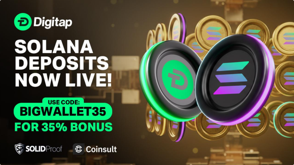 A Digitap também tornou depósitos na Solana ativos, permitindo aos utilizadores financiar as suas contas rapidamente usando a rede Solana, que suporta acessos mais rápidos e menor fricção nas transações.