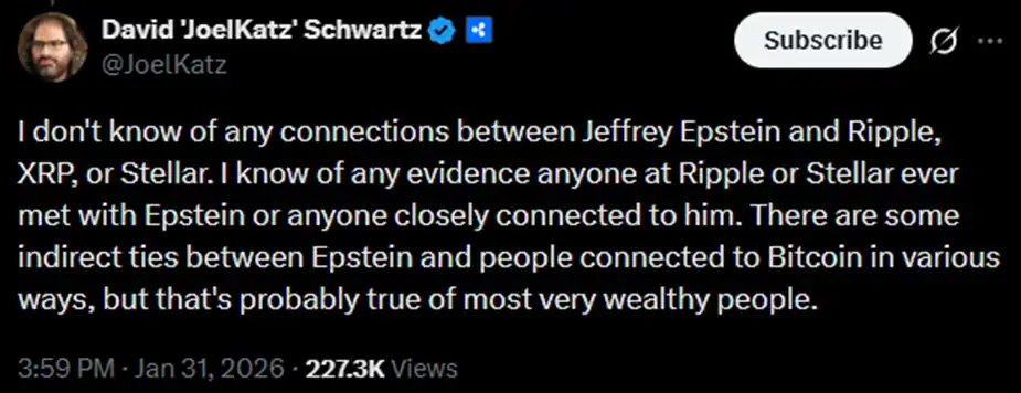 Isto pode indicar que a maldade de Epstein também se estende ao setor das criptomoedas? Schwartz também afirmou que, para a maioria dos ultra-ricos, a ligação com o Bitcoin pode ser bastante comum.