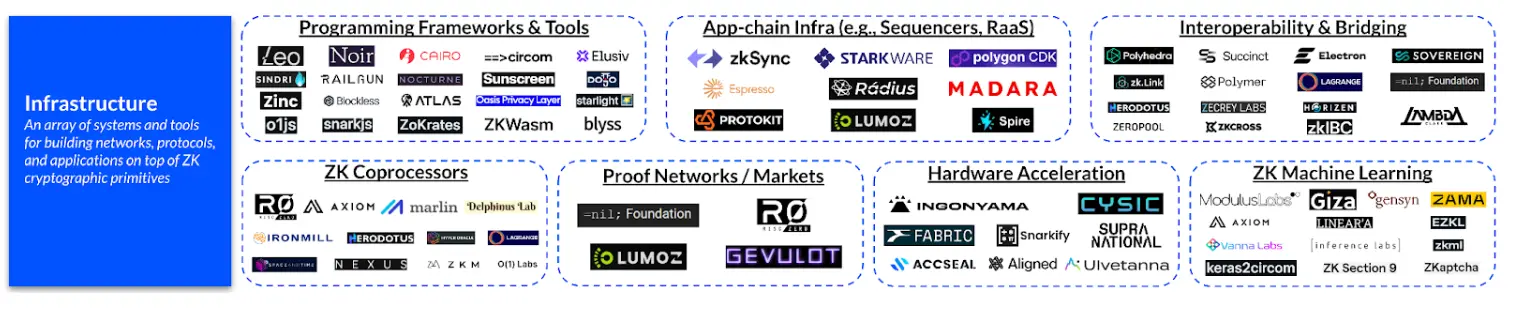 Инфраструктура, т. е. инструменты/оборудование для создания протоколов/приложений на основе примитивов с нулевым разглашением.