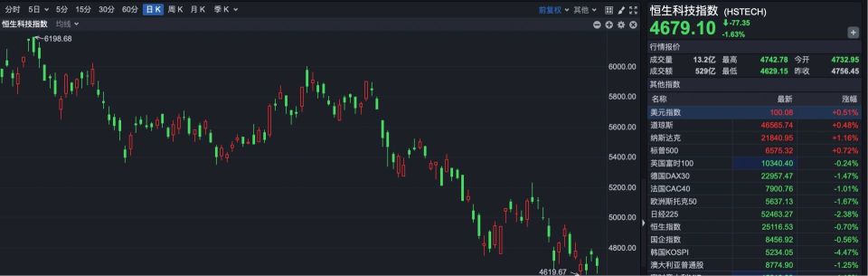 Индекс Hang Seng TECH по итогам торгов составил 4679.10 пункта, снизившись на 77.35 пункта, падение на 1.63%.
