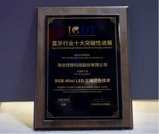 В последнее время 2026 года международная конференция по технологиям отображения (ICDT) проходит в Чунцине. Благодаря прорывным инновациям в области дисплеев Hisense сразу завоевала три престижные награды, включая глобально первый в мире RGB-Mini LED технологию, которая была включена в премию «ТОП-10 прорывных достижений в индустрии отображения Китая», став единственной крупной премией за прорыв в области крупноформатных ЖК-дисплеев за последние десять лет. Глобально первый телевизор玲珑4芯真彩背光RGB-Mini LED 116UX получил «золотую награду за лучший дисплейный прикладной продукт года». Глобально первый 85-дюймовый RGB-Mini LED場序显示高亮 цифровой рекламный щит получил «награду за лучшую инновационную технологию дисплейного применения года».