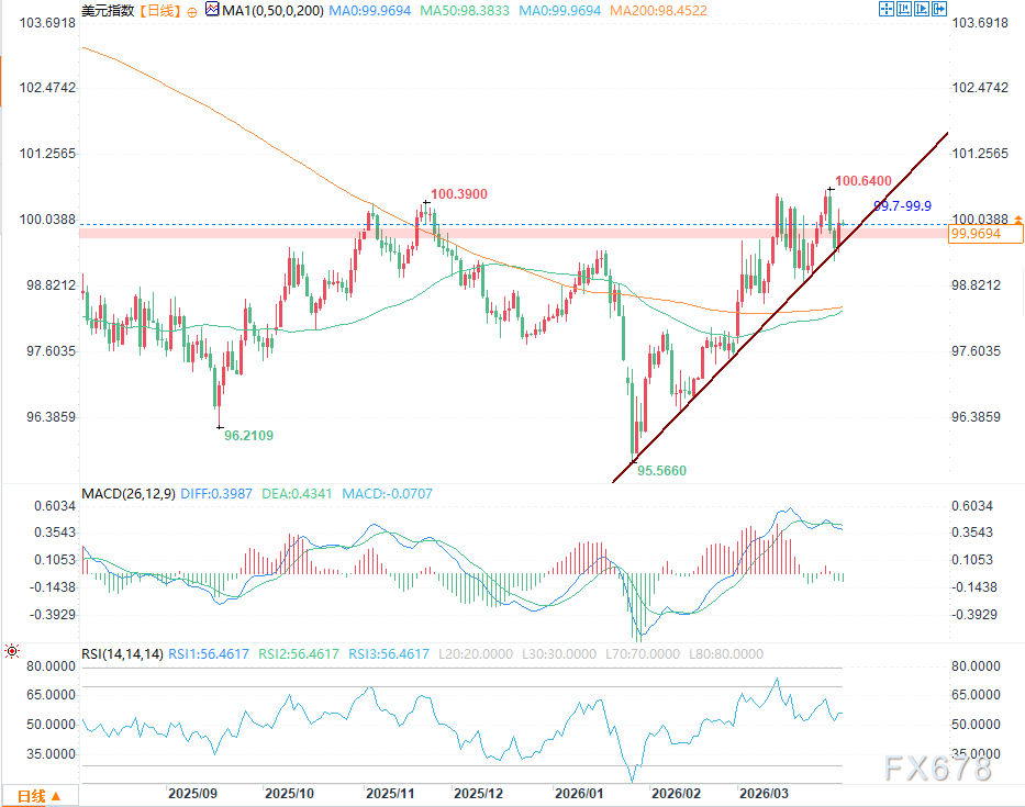 Основные уровни поддержки индекса доллара сосредоточены в двух ключевых скользящих средних: 200‑дневной MA 98.443 и 50‑дневной MA 98.381. Текущая 50‑дневная MA уже завершила пересечение выше 200‑дневной MA, сформировав классический сигнал «золотого креста»; это обеспечит сильную техническую поддержку среднесрочному подъему доллара. В дальнейшем, если удастся удержать поддержку на уровне скользящих средних, возможно ускорение отскока.