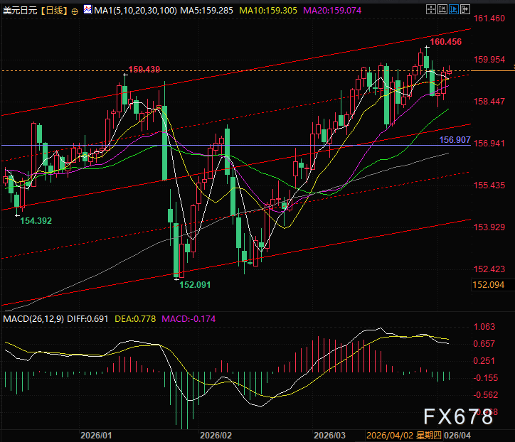 На фоне низкой активности на валютном рынке в связи с праздником Страстной пятницы и относительно тонким объемом торгов в пятницу в азиатскую сессию иена по всей линии ослабла против корзины основных и второстепенных валют. Пара USD/JPY третий день подряд находится в диапазоне снижения; в тот же день USD/JPY поднялась на 0,1% до 159,72.