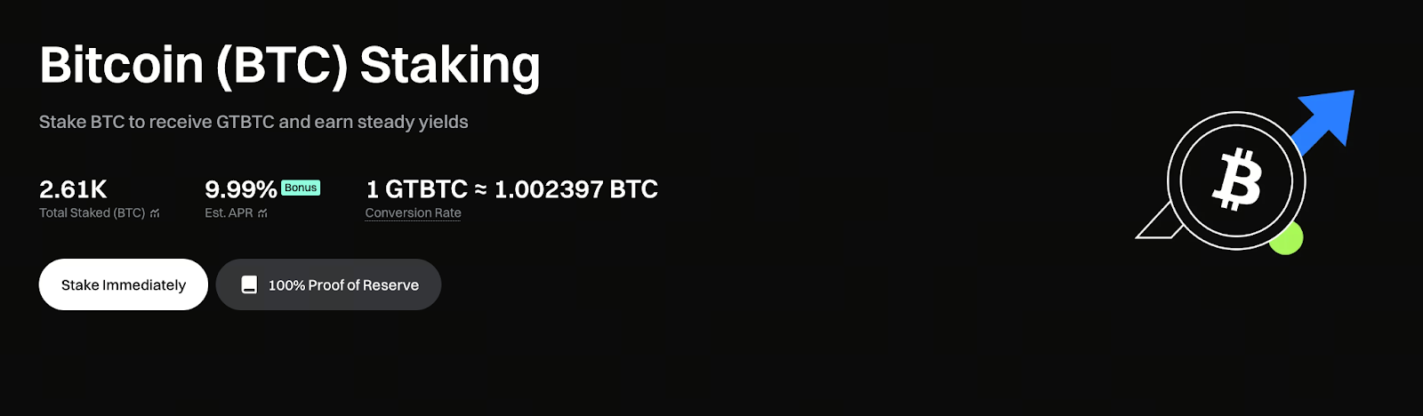 When users convert BTC to GTBTC, their assets remain within the BTC ecosystem, entering a unified yield management structure. Gate employs staking and strategic approaches to manage BTC, distributing generated yield to users as GTBTC. The current annualized yield for GTBTC is 9.99%.