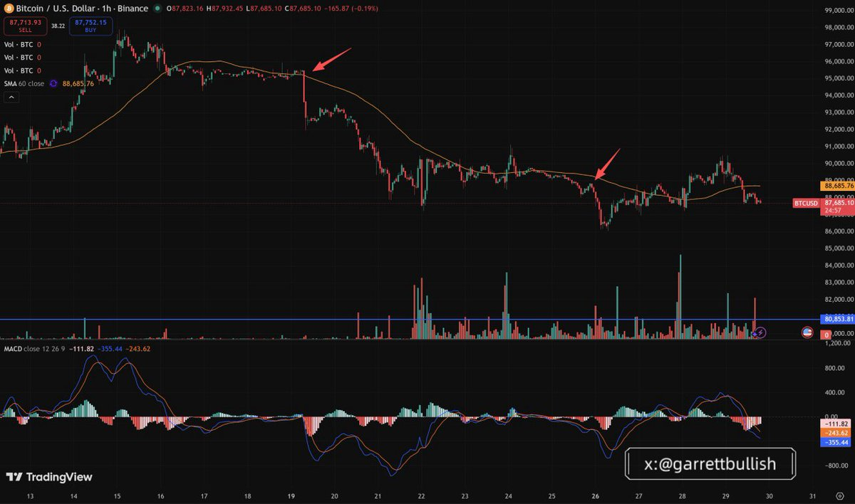 We frequently observe concentrated selloffs during periods of thin liquidity, particularly when Asian or US investors are asleep, for example between 00:00–8:00 AM Asian time. These moves trigger liquidations, margin calls, and forced selling.