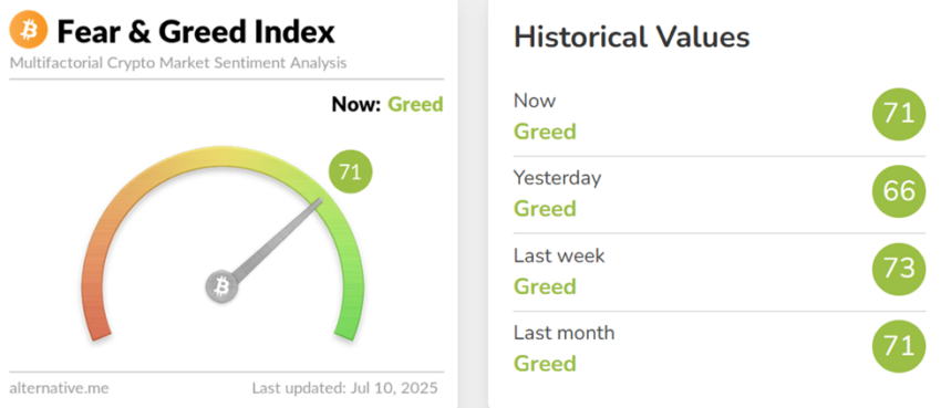 Although Bitcoin has reached a new ATH and capital from ETFs continues to flow in, the overall sentiment in crypto communities and on social media remains quite cautious. Along with that, the Fear and Greed Index of cryptocurrency has started to lean towards “greed”, but has not yet reached a peak level of excitement.