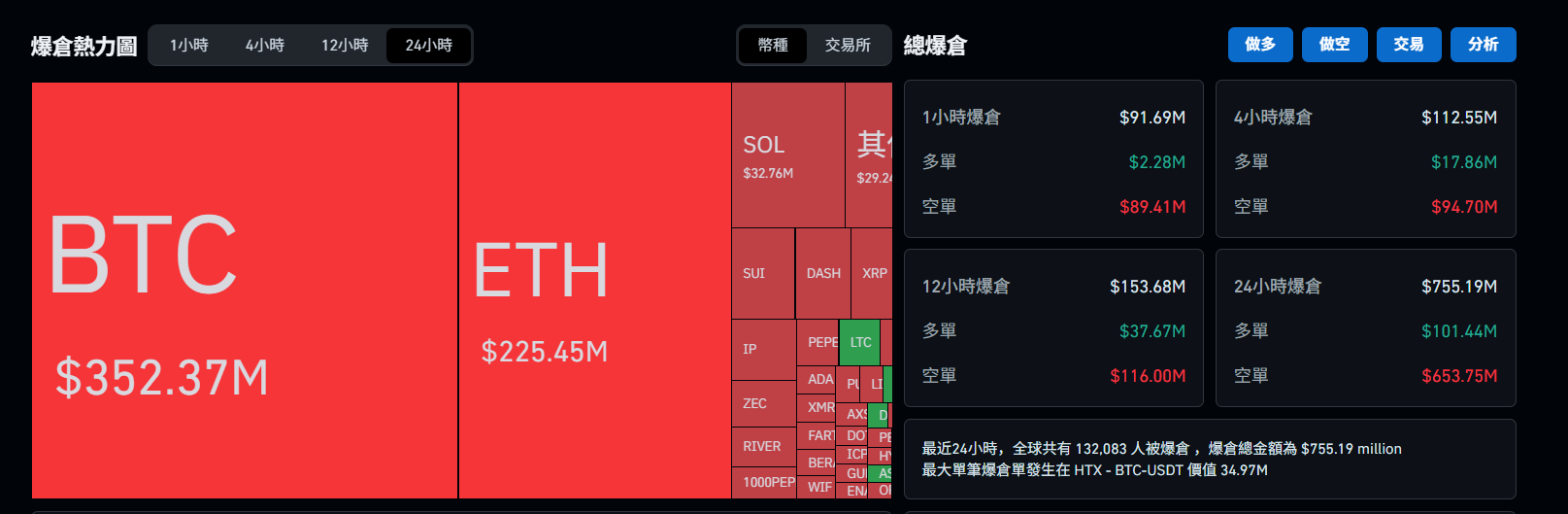 During this strong rebound, according to Coinglass data, a total of 132,000 traders were liquidated in the past 24 hours, with total liquidation amounting to approximately $756 million. Among them, long positions were liquidated for about $101 million, while short positions were liquidated for as much as $659 million.
