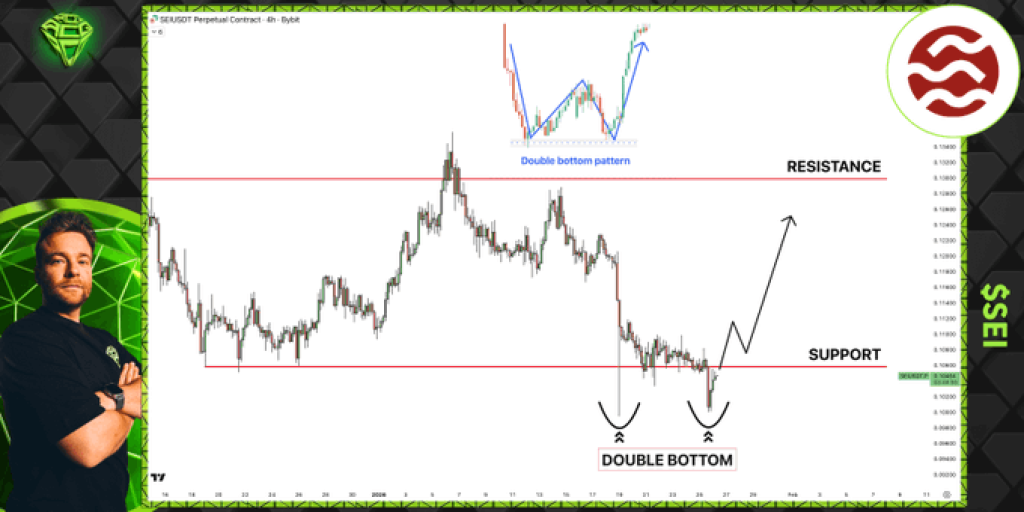 That behavior matters because it shows buyers are stepping in at roughly the same price level. Instead of the SEI price continuing to fall freely, it is now reacting and stabilizing around this support.