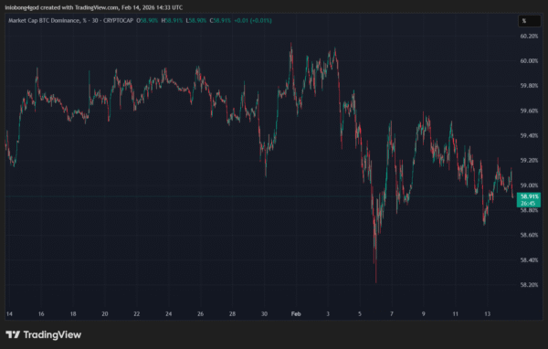 As per TradingView data, Bitcoin dominance traded within the 58%–59% range during the downturn. A brief break above 60% indicated capital rotation into BTC as a defensive move. However, failure to sustain that level signaled limited fresh inflows into the market. Meanwhile, altcoins continued to underperform and absorb most of the selling pressure.