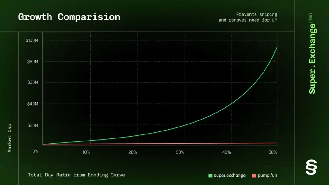 Using Super Curve vs. traditional Bonding Curve token growth, image from @_superexchange official account