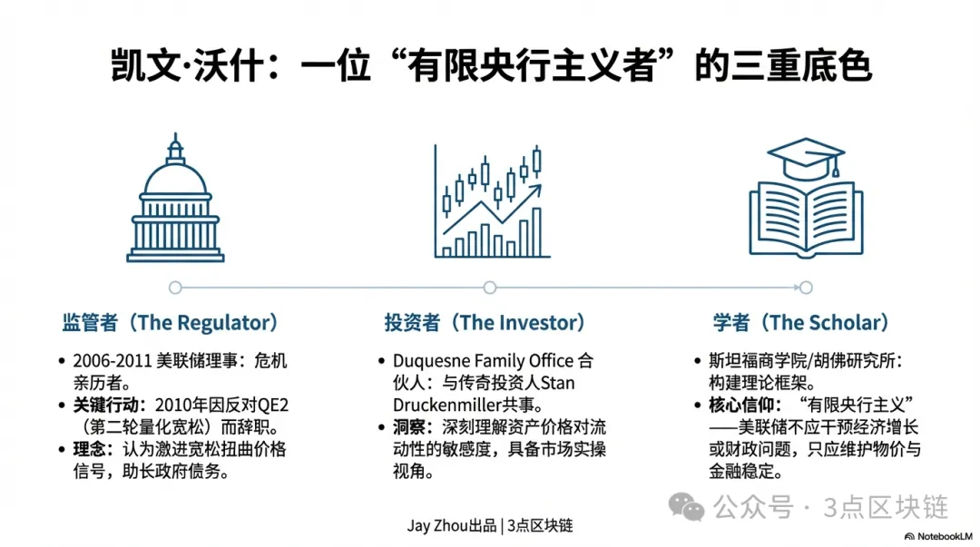 Кар’єра Кевіна Варша постійно поєднувала державну політику та приватний ринок, формуючи його критичний погляд на монетарну політику та прагматичний стиль. Для розуміння позицій Варша важливо враховувати його потрійну ідентичність: регулятор, науковець та інвестор.