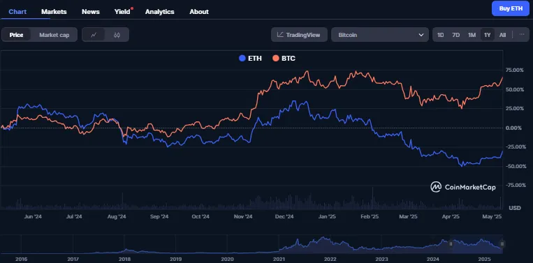 Ефіріум безсумнівно переживає труднощі. З грудня 2024 року, щоразу коли зміна настроїв на ринку призводить до загального падіння крипторинку, лише біткоїн зміг відскочити до попередніх рівнів і перевищити їх, тоді як ефіріум після падіння майже не зміг повернутися до початкової точки.