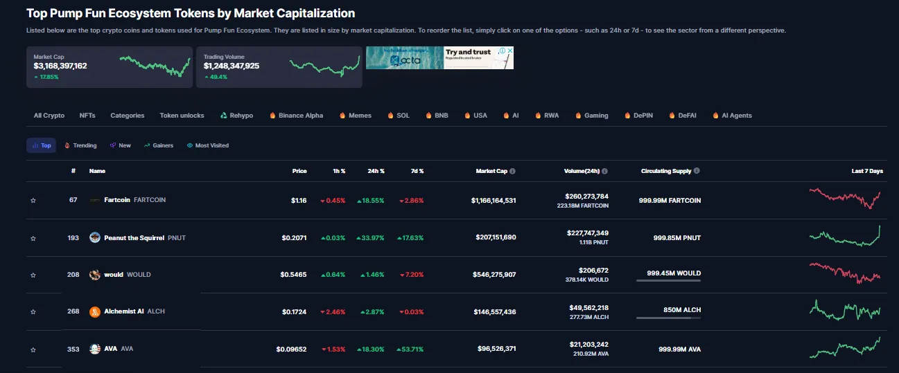 У той час як біткойн займає центральне місце і затьмарює Ethereum, монети-меми роблять те ж саме. На жаль, ці монети-меми не були запущені в ланцюжку Ethereum. Одна з найуспішніших монет-мемів у 2025 році, Fartcoin, з ринковою капіталізацією понад $1 млрд, була запущена в ланцюжку Solana. PumpFun, популярна платформа для випуску монет-мемів, також є на Solana. Можливо, ви не помітили, але більшість найгарячіших мемтокенів, створених наприкінці 2024 та 2025 років, належать PumpFun.