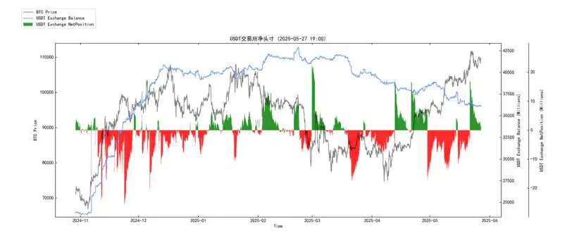 Являє собою чистий відтік великих переказів (від 1 до 10 мільйонів доларів у кольорі, 10 мільйонів доларів або більше у червоному). Незважаючи на те, що він не був таким стійким і жорстоким, як у деякі попередні періоди, загальний чистий відтік все ще залишається домінуючою тенденцією, і великомасштабного чистого припливу не відбулося. Незважаючи на уповільнення потоків ETF, великі суми грошей продовжували чистий відтік з торгових платформ, що свідчить про те, що все ще існують великі рахунки або установи, які накопичують BTC і займаються самостійним зберіганням, або торгують через позабіржовий ринок. Потенційний тиск продажів на торгову платформу продовжує знижуватися, а накопичення великих рахунків триває, хоча його сила може коливатися в залежності від ринкової кон’юнктури.