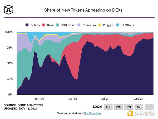 Сьогодні Solana домінує в цій сфері, підтримуючи 89% нових випусків токенів. Лише минулого тижня на DEX (децентралізованих біржах) з’явилося 181 000 нових токенів. Це не лише проблема ємності, але й доступності. Такі платформи, як pump.fun, дозволяють будь-кому випускати токени, але рівень успіху говорить нам про одну важливу річ: лише менш ніж 2% токенів успішно потрапляють до Raydium, а лише 0,0045% токенів можуть підтримувати ринкову капіталізацію понад 1 мільйон доларів.