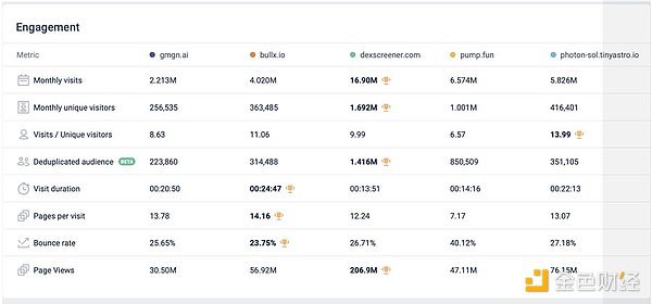 Коли ми порівнюємо використання мобільних і настільних комп’ютерів, Photon виділяється. Серед трьох основних торгових терміналів найбільше мобільних користувачів мають gmgn.ai, BullX і Photon-Photon, а найбільше десктопних користувачів — BullX. Хоча BullX має велику базу користувачів для настільних комп’ютерів, значна частина його трафіку надходить із посилань на Telegram. Це свідчить про те, що навіть з мобільною платформою Telegram для розповсюдження, користувачі в кінцевому підсумку будуть взаємодіяти з BullX на своїх настільних комп’ютерах. Це також частково свідчить про складність цих терміналів і про те, що користувачі вважають за краще працювати в середовищі, де всіма функціями можна керувати більш комфортно.