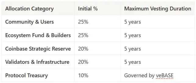 Фонд розподілу з акцентом на розподіл (стратегічний резерв Coinbase, казначейство протоколу, громада та користувачі): отримання збільшених викидів під час сильних показників KPI, щоб оптимізувати розподіл вартості під час високого рівня прийняття.