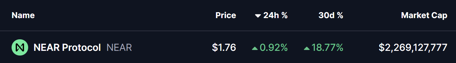 Near Protocol (NEAR) набирає обертів, з ціною, що зросла майже на 18% за останні 30 днів.