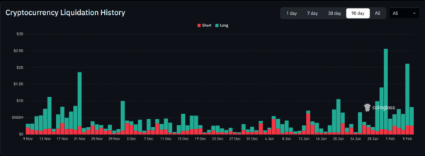 Дані про ліквідації підтверджують тиск і поточну волатильність ринку, з якими стикається актив високої капіталізації. За даними CoinGlass, криптовалютні ринки втратили близько $2,58 мільярда всього за один день, переважно через довгі позиції. Різке падіння цін спричинило ліквідацію ETF на суму $817 мільйонів протягом чотирьох годин, що додатково підсилює нестабільність ринку.