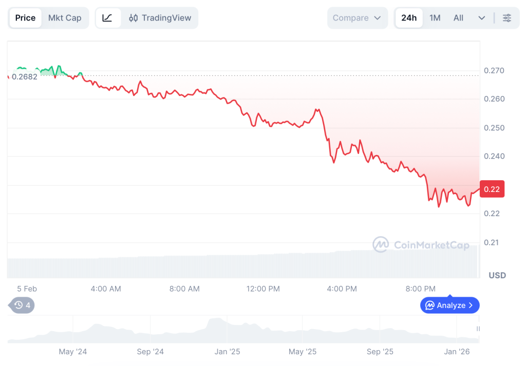 Довгострокові прогнози залишаються амбіційними ($1.64 до 2040 року, $6.02 до 2050 року), але короткостроковий шлях залежить від утримання рівня $0.22.