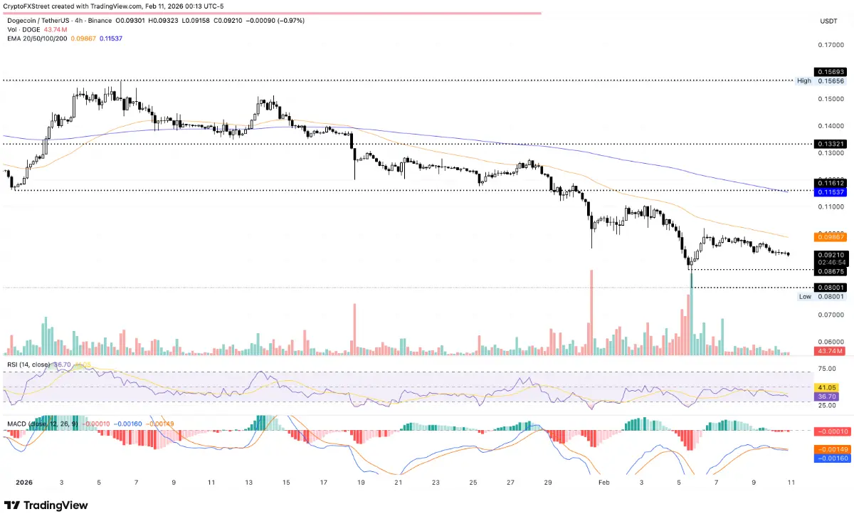 Що стосується важливих технічних рівнів, найближча підтримка для Dogecoin знаходиться біля 0,08675 долара США. Якщо ціна закриється нижче за цей рівень, тиск продажу може спричинити поглиблення падіння до мінімуму 6 лютого біля 0,080 долара. Навпаки, будь-яке відновлення, ймовірно, зустріне значний опір на рівнях EMA 50 і 200 днів — відповідно біля 0,098 і 0,1153 долара.