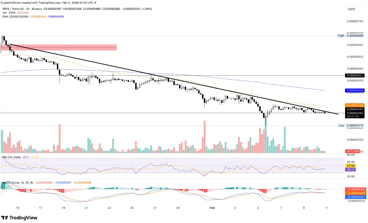 У більш позитивному сценарії, якщо PEPE зможе відновитися і прорватися вище за рівень 0,00000370 долара, це підтвердить прорив рівня опору. Тоді цільовим рівнем стане EMA 50 біля 0,00000390 долара, а далі — EMA 200 на рівні 0,00000458 долара.